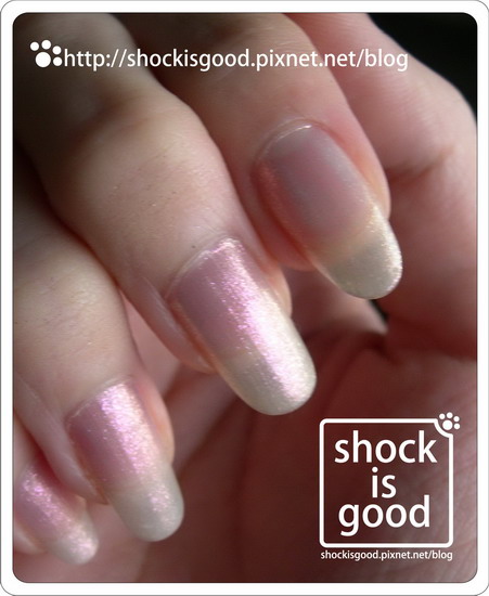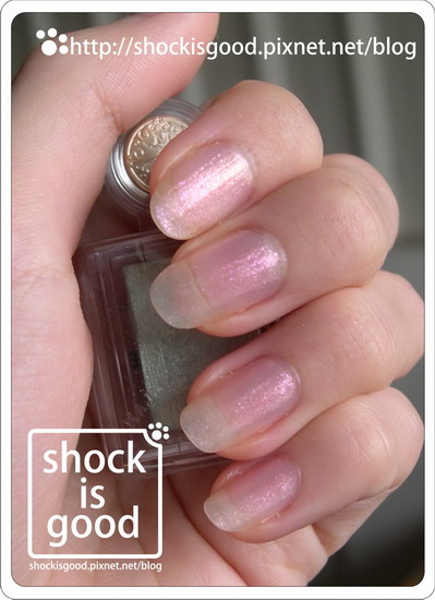 他的桃紅色亮片真的很大量又很明顯,所以指甲油的光澤感都是呈現粉紅
