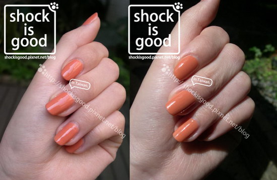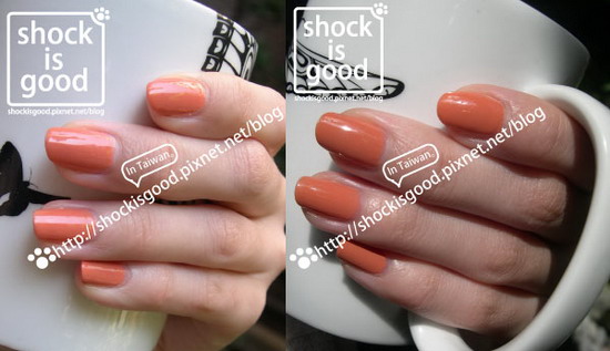 。左:PASTEL P29。右:火辣辣的橘,OPI B39。